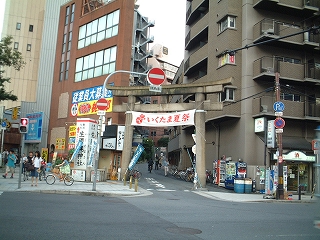 昨日、いくたまさんの夏祭でした。そこで、ミクシーのオフに参加してきました。私は、日本橋から黒門市場を抜け神社西側からのアプローチ。聞くとまだ集まっていないとのことで谷九の駅へ...。