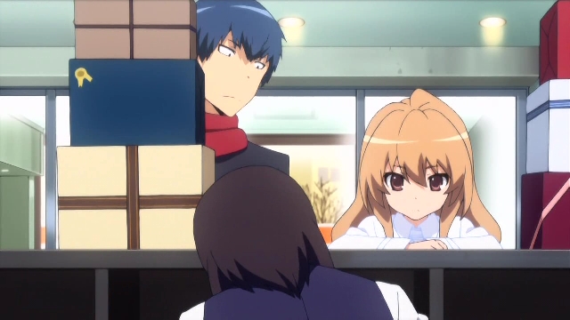 さて大河は、いっぱいのプレゼントを発送するために竜児と〒へ。家族を始め色んな人にプレゼントをするサンタさん状態。小さい時に会った本物のサンタクロース(おそらく夢?)を見てから、その存在を信じていてボランティアみたいなことをしていたのであった。