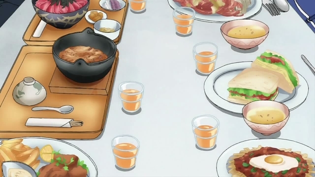 右上から「不明(和)」「サンドイッチ(咲)」「ミートソーススパゲッティー(タコス)」おそらく。。。