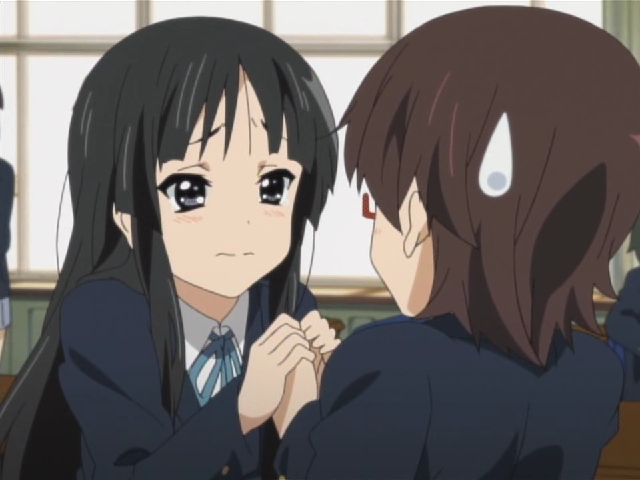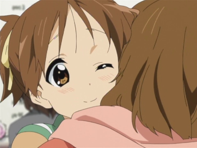 妹の合格を泣いて喜んで抱きしめる唯とそれを喜ぶ憂ちゃん。本当に仲良し姉妹ですな^^