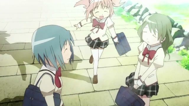 夢落ちだったモノトーンから現実の天然色の世界へ。ヒロインの「鹿目まどか(かなめまどか)」は、普通の家庭育ちっぽい。