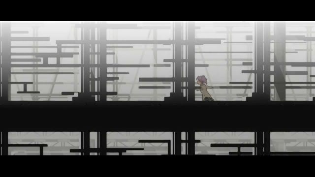 直ぐに、新房xシャフト作品を印象付かせる出だし。建設途中のビルを連想させる鉄骨。そして白黒というモノトーンを多用した世界。不安な感じを抱かせる、心の中の世界を表現した様な演出は、もう専売特許の様に思えてきました。