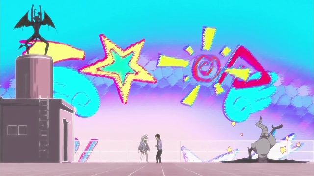 また例の宇宙人が出現したので校舎屋上で勝負といきたい所ですが、もう飽きちゃったのでニャル子のペットに戦わせることに。しかし、その子が弱いの何のって。