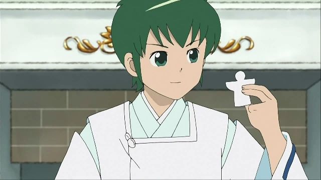 一方、明日の心霊対決の練習をしていた阿修羅くん。陰陽師みたいな格好で何やら練習中。